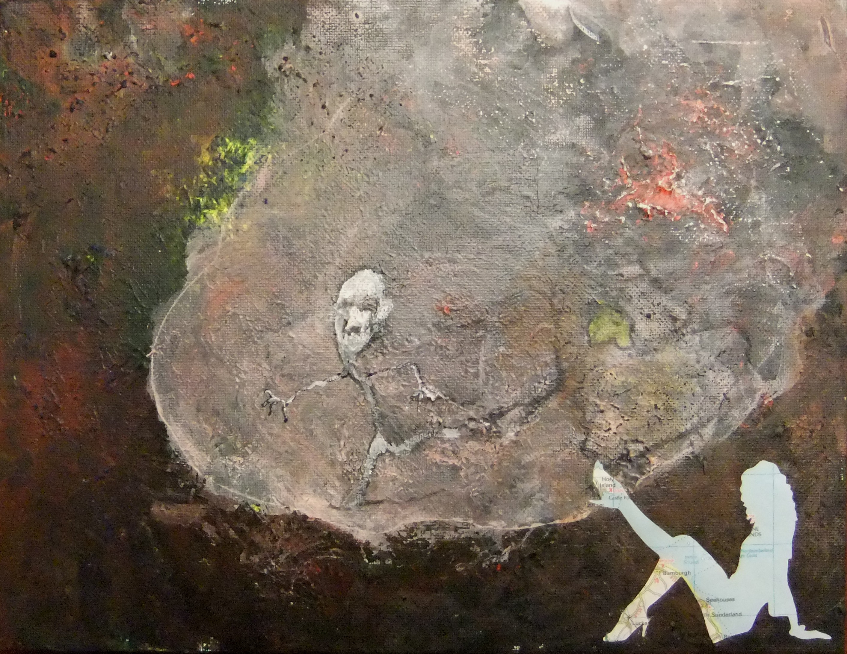 I make paintings and collages featuring Map Girl, who follows me everywhere, it seems. Many works shown on these pages are for sale, so please contact me at gavinsalisbury1 [at] gmail.com if you’re interested.